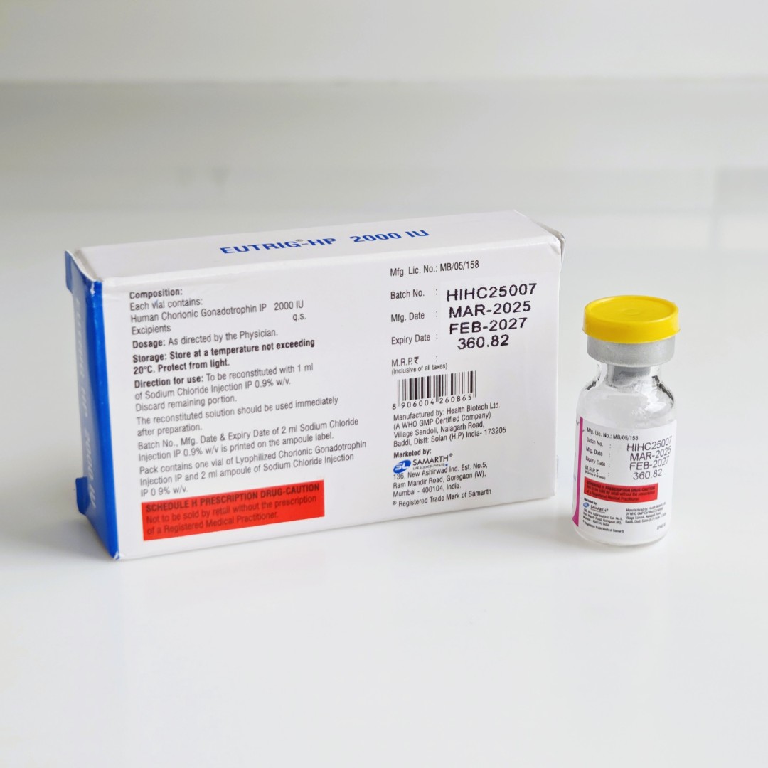 Предлагается купить гонадотропин Eutrig-HP 2000 в Киеве с доставкой в любую точку Украины. Препарат поставляется во флаконе в виде порошка для разведения. В комплекте идет специальная вода для инъекций 2 мл, поэтому у вас не будет сложностей с выбором, чем разводить гонадотропин.