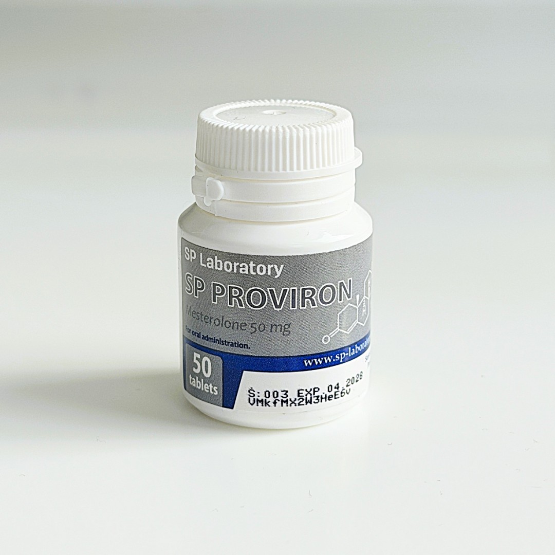 Таблетки Провирона SP Labs, вы можете купить в нашем интернет магазине, белого цвета упаковываются во флаконы по 50 штук. Основным активным компонентом является Местеролон в дозировке 50 мг, а также в состав входят лактоза моногидрат, кукурузный крахмал, повидон, метилпарагидроксибензоат, стеарат магния и другие вещества.