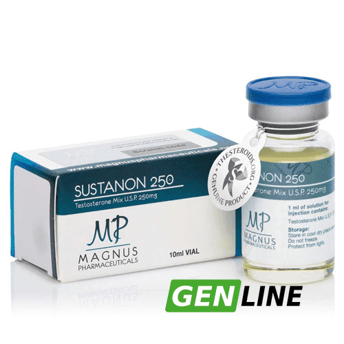 Sustanon-250 - это инъекционная смесь тестостерона на масляной основе, содержащая четыре различных эфира тестостерона: тестостерона пропионат (30 мг); тестостерона фенилпропионат (60 мг); тестостерона изокапроат (60 мг); и тестостерона деканоат (100 мг). Sustanon разработан для быстрого, но пролонгированного высвобождения тестостерона, обычно требующего инъекций раз в 3-4 недели в клинических условиях. Это является улучшением по сравнению со стандартными тестостеронами, такими как ципионат или энантат, которые обеспечивают более короткую продолжительность действия. Как и все препараты тестостерона, Sustanon-250 - очень сильный анаболический препарат с выраженной андрогенной активностью. Чаще всего он используется в циклах набора мышечной массы, обеспечивая исключительный прирост силы и мышечной массы. Sustanon 250 содержит смесь четырех соединений тестостерона, которые были модифицированы добавлением эфиров карбоновых кислот (пропионовой, фенилового эфира пропионовой, изокапроновой и деканоиновой кислот) к 17-бета-гидроксильной группе. Эстерифицированные формы тестостерона менее полярны, чем свободный тестостерон, и медленнее всасываются из места инъекции. Попадая в кровоток, эфир удаляется, образуя свободный (активный) тестостерон. Эстерифицированные формы тестостерона предназначены для продления терапевтического эффекта после приема, что позволяет реже делать инъекции по сравнению с инъекциями свободного (неэстерифицированного) стероида. Sustanon 250 разработан для быстрого достижения пика уровня тестостерона (через 24-48 часов после инъекции) и поддержания физиологических концентраций в течение приблизительно 21 дня/34 Каждая ампула 250 мг содержит 176 мг тестостерона.