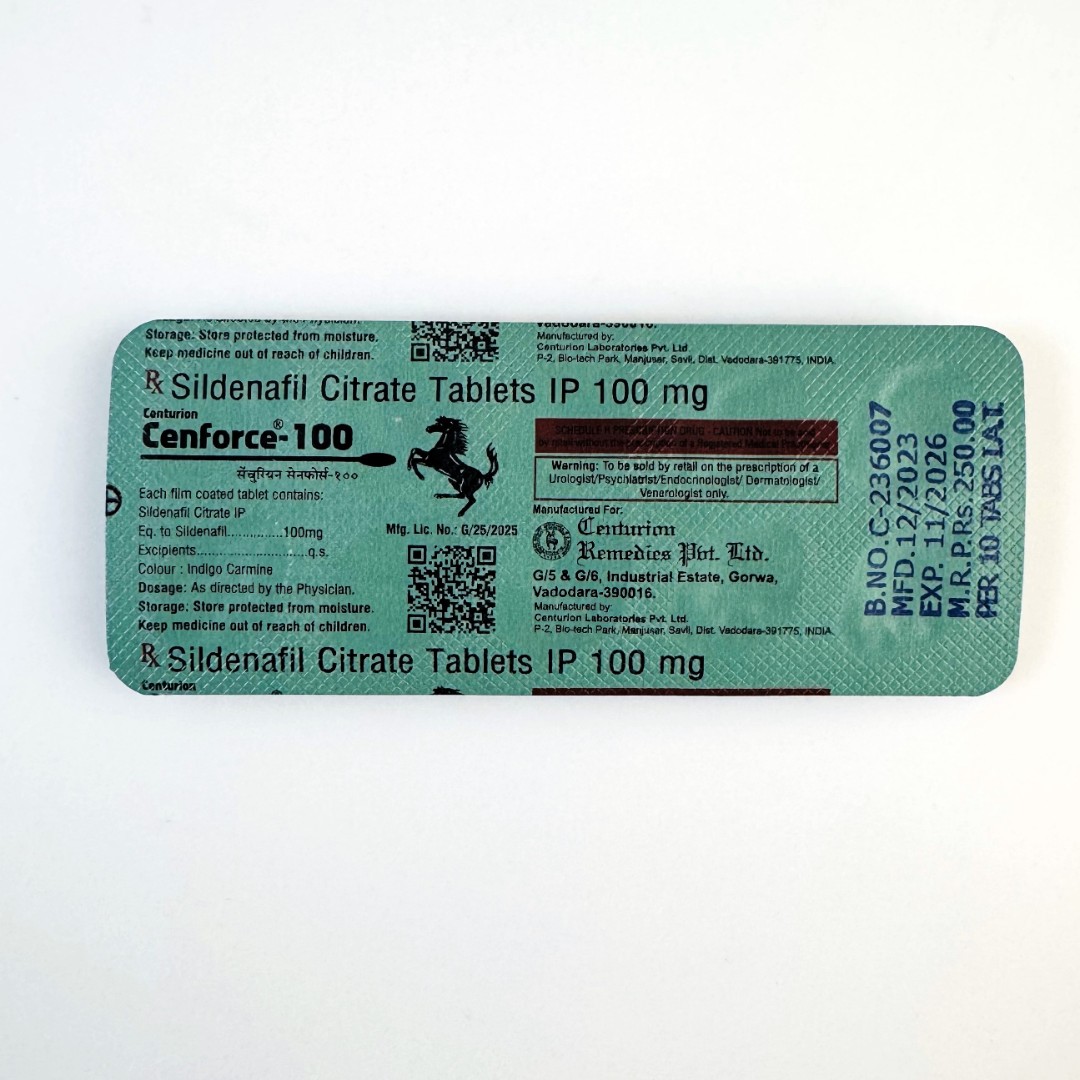 Ми пропонуємо купити Cenforce 100 мг у таблетках по 10 штук у блістері. Виробник - індійська фармацевтична компанія Centurion Remedies Ltd., відома своїми високими стандартами контролю якості.