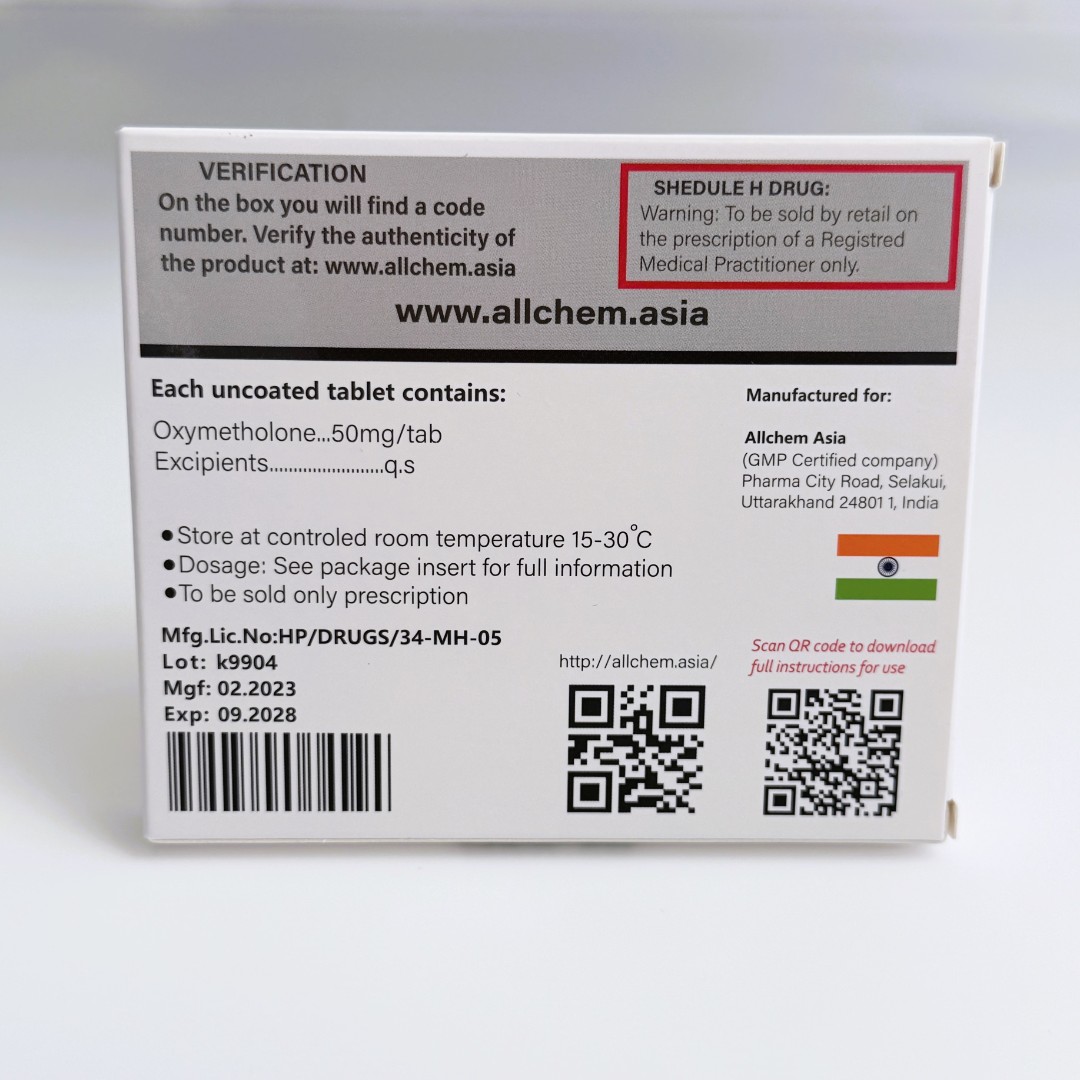 Оксиметолон – синтетичний анаболічний стероїд, відомий у спортивному середовищі як один із найпотужніших засобів для швидкого набору маси та збільшення силових показників. OXY-50 від Allchem – це блістер на 50 таблеток, кожна з яких містить 50 мг активного компонента. Таке дозування зручне для побудови курсів різної інтенсивності.